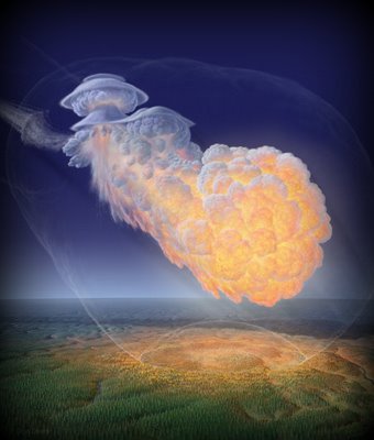 | Pending Doom The ripping force of Anti-Gravity Currents will likely cause a loss of magnetic lock in this large Meteor / Comet. First, Anti-Gravity ripping streams, then nuclei and quantum magnetic lock fails. X-Dark Energy compresses other quantum field particles and space. The energy release is instant and catastrophic, but not as much as a Uranium or Plutonium bomb. |
