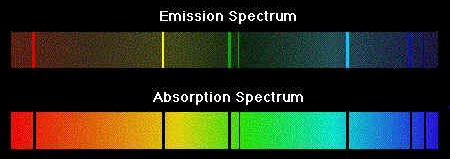 When the element's Quantum Ring Fields, are forced tighter together because of the compressing forces of Dark Energy, the fields slip past each other and displace electrons. The electrons in turn jump orbits, which causes a temporary anomaly in the atoms vibration. The atomic quantum stacked ring fields can move both ways, either tighter together, or further apart, depending on the environment. (b) An increase in compression of quantum fields creates Absorption Lines, a decrease in compression of these fields creates Emission Lines. Absorption / Emission Lines are also produced by interrupting atomic vibrations, because of electrons jumping orbits. Now for the kicker, the individual colors and their spectra lines are not produced by photons, they are, pressure / magnetic waves in the Medium of Dark Matter. One more prediction of TM. (*) It is not the Electron that emits or absorbs photon energy when jumping orbits. This concept is discarded in the Grand Unified Theory. This is because it stems from a misunderstanding of the atoms construction. It was assumed that the atomic nucleus was surrounded by empty space. It is not, it is surrounded by physical dark matter quantum fields. So the conclusion, it is the whole vibrating atomic system that gets interrupted with energy changes, and creates Spectra Lines, not the Conceptual Photons.