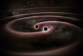 The merging. As Gravity draws the Black Stars together they orbit each other thus creating enormous oscillating pressure waves in the surrounding Dark Matter Sea. (not Gravity Waves, they are Pressure Waves caused by Gravity). Because the gravity currents between the two stars are so strong, and are getting stronger as they approach each other, their poles orientate to match up. Orbiting continues with accelerated orbital spin for each, but, not necessarily the axis spin for each. Now synchronizing takes place and they finally do match polar speed and spin. The end is near as they both increase orbital spin frequency.